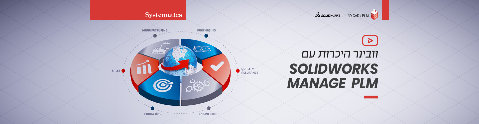 SOLIDWORKS MANAGE PLM מביא לארגונים את מה שחסר בין PDM קלאסי לבין מערכות PLM גדולות: פתרון חזק, גמיש ומשולב שמאפשר לנהל פרויקטים, תהליכים ונתונים קריטיים בסביבה אחת מוכרת.